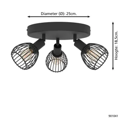 Eglo Deckenleuchte Sonni Stahl Schwarz | IP20 - Geeignet für 3x E14