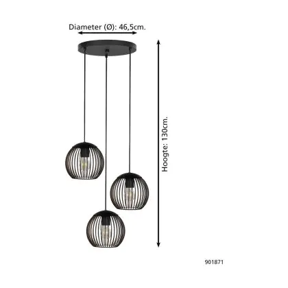 Beschreibung Eglo Pendelleuchte Almanzora Stahl Schwarz Bernstein | IP20 - Geeignet für 3x E27
