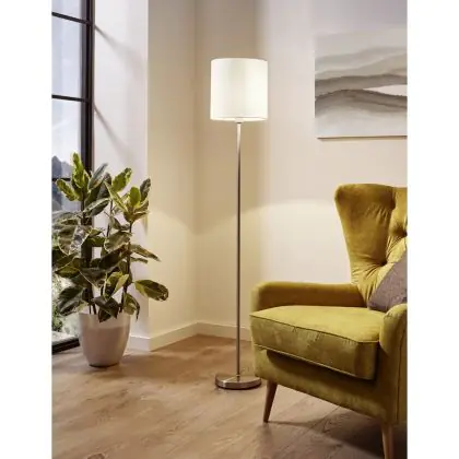 Beschreibung Eglo Stehlampe Pasteri Stahl Satin-Nickel Weiß | IP20 - Geeignet für 1x E27