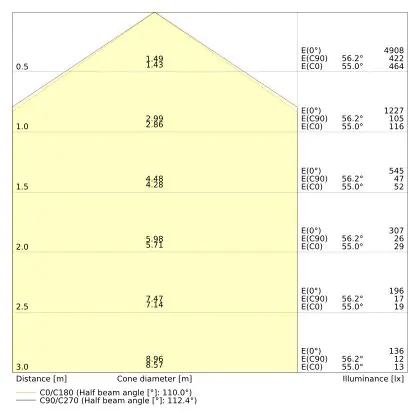 Diese LED-Deckenleuchte punktet mit einer Leuchtkraft von 3.500 lm und strahlt somit einiges an Licht aus. Die ebenfalls hohe Lichtausbeute von 135 lm/W zeugt von einer guten Effizienz. Wenn Sie die Stärke dieses Lichts mit dem Ihrer konventionellen Lichtlösung vergleichen möchten, empfehlen wir Ihnen einen Blick in unsere praktische Tabelle Lumen in Watt umrechnen.