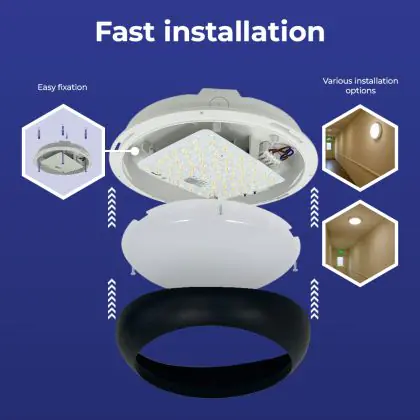 Die Noxion LED-Wand- und Deckenleuchte Pro V2 12/16/20W 2400lm - 830-840-865 CCT | 325mm - IP65 + Ring Schwarz ist eine Feuchtraumleuchte. Sie strahlt Licht in der Farbtemperatur 3000K - 4000K - 6500K CCT aus und punktet durch eine lange Lebensdauer. Diese Leuchte ist speziell zur Verwendung in Feuchträumen (Keller, Waschräume, etc.) vorgesehen.