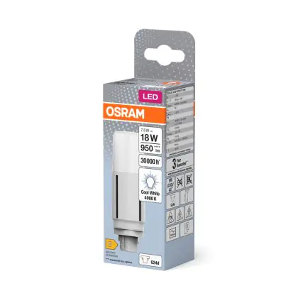 Die Osram Dulux-D LED 7.5W 950lm - 840 Kaltweiß | 2-Pins - Ersatz Für 18W ist eine Kompaktleuchtstofflampe von Osram. Das Produkt mit 2 Pins strahlt Licht in der Farbtemperatur 4000K - Kaltweiß aus und punktet durch eine lange Lebensdauer.