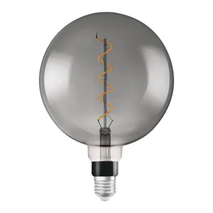 Die Osram Vintage 1906 LED E27 Globe Fadenlampe Smoke 200mm 5W 110lm - 818 Extra Warmweiß | Dimmbar - Ersatz für 25W ist eine effiziente E27 LED-Lampe mit Retrodesign und der perfekte Ersatz für Ihre konventionellen 25W Lampen mit E27. Zudem strahlt sie Licht in der Farbtemperatur 1800K - Extra Warmweiß aus und punktet durch eine lange Lebensdauer.