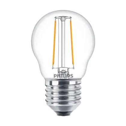 Die Philips Corepro LED Lustre E27 Kugel Fadenlampe Klar 2W 250lm - 827 Extra Warmweiß | Ersatz für 25W ist eine effiziente E27 LED-Lampe mit Retrodesign und der perfekte Ersatz für Ihre konventionellen 25W Lampen mit E27. Zudem strahlt sie Licht in der Farbtemperatur 2700K - Extra Warmweiß aus und punktet durch eine lange Lebensdauer.