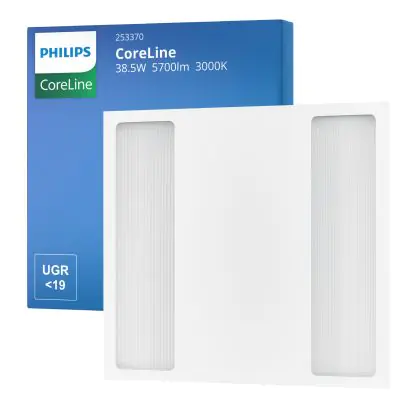 Bei dem Produkt “Philips LED Panel CoreLine RC136B G4 38.5W 5700lm - 830 Warmweiß | 60x60cm - UGR” handelt es sich um eine effiziente Rasterleuchte der Marke Philips, welche Licht in der Farbtemperatur 3000K - Warmweiß ausstrahlt und durch eine lange Lebensdauer punktet.