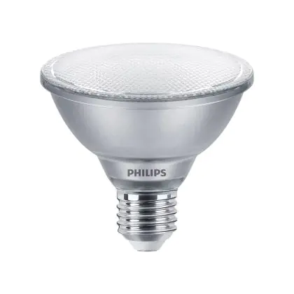 Der Philips Master Value LED Glühbirne Reflektor E27 PAR30 9.5W 740lm 25D - 927 Extra Warmweiß | Höchste Farbwiedergabe - Dimmbar - Ersatz für 75W ist ein leistungsstarker LED-Strahler mit E27-Sockel. Er kommt mit einer hohen Lebensdauer von 25000 Stunden daher und spart Ihnen somit nicht nur Energie-, sondern auch Austausch- und Wartungskosten. Im Preis ist zudem eine All-In-Garantie von 5 Jahre enthalten.